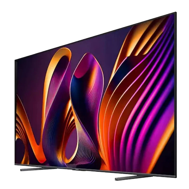 ابعاد ۱۰۰ اینچی صفحهنمایش تلویزیون هایسنس 100Q7N مهمترین عامل ایجاد تجربهای فراگیر و سینمایی برای کاربران است. این اندازه بزرگ باعث میشود تصویر بخش عمدهای از میدان دید بیننده را در بر بگیرد و حس غوطهوری در محتوا به شکل چشمگیری افزایش یابد. طراحی صفحهنمایش بهصورت تخت انجام شده که علاوه بر ظاهر مدرن، باعث کاهش اعوجاج تصویر و حفظ یکنواختی نمایش در تمام نقاط صفحه میشود. حاشیههای باریک اطراف نمایشگر، تمرکز بصری را افزایش داده و جلوهای لوکس و حرفهای به تلویزیون میبخشند. این طراحی، امکان نصب تلویزیون روی دیوار را نیز فراهم کرده و آن را به انتخابی مناسب برای دکوراسیونهای مدرن تبدیل میکند. تکنولوژی DLED بهکاررفته در پنل، نور پسزمینه یکنواختی ایجاد میکند که در صفحهای با این ابعاد اهمیت بسیار بالایی دارد. این ویژگی باعث میشود تصویر در تمام سطح نمایشگر کیفیت یکسانی داشته باشد. نسبت تصویر استاندارد، نمایش صحیح محتوای سینمایی و تلویزیونی را تضمین میکند. در مجموع، ابعاد بزرگ، طراحی تخت و کیفیت ساخت مناسب، تلویزیون 100Q7N را به گزینهای ایدهآل برای فضاهای بزرگ و کاربریهای حرفهای تبدیل کرده است.
