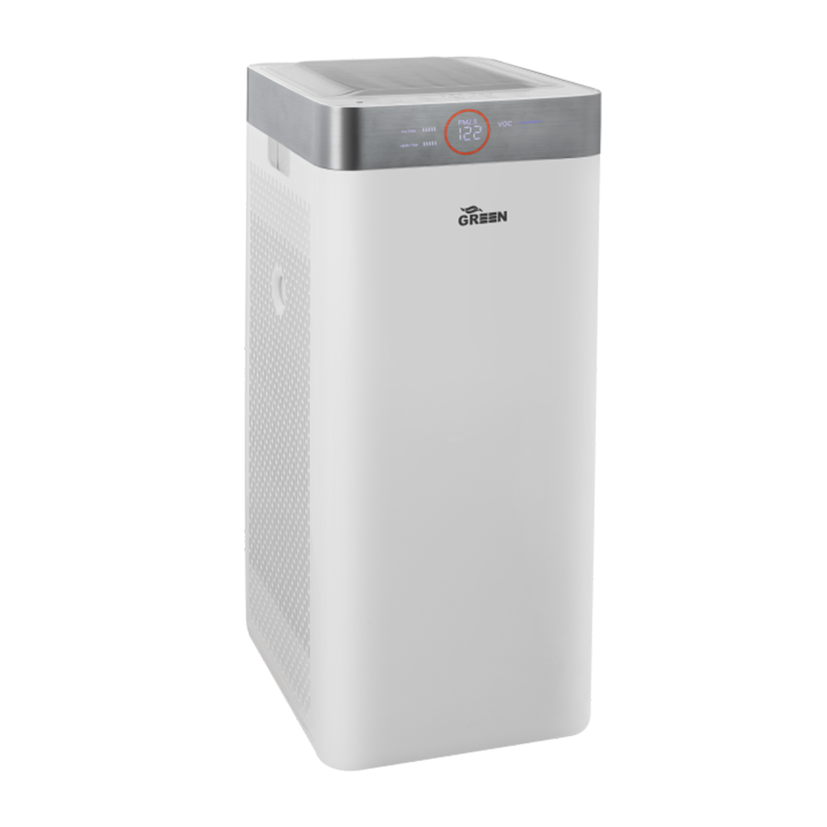 یکی از برجستهترین ویژگیهایی که دستگاه تصفیه هوا گرین مدل GAP550P1F5 را در زمره محصولات تراز اول جهانی قرار میدهد، سیستم کنترل هوشمند و رابط کاربری پیشرفته آن است. این دستگاه به یک صفحه نمایش لمسی مدرن و زیبا مجهز شده است که کنترل تمامی عملکردها را به سادگی یک لمس امکانپذیر میسازد. گل سرسبد این سیستم هوشمند، “نمایشگر وضعیت کیفیت هوا” است. این قابلیت با استفاده از یک سنسور لیزری بسیار دقیق، به طور مداوم و در لحظه، غلظت ذرات معلق (PM2.5) در هوای محیط را اندازهگیری میکند. نتایج این سنجش به صورت یک عدد دقیق و همچنین یک نشانگر نوری رنگی بر روی پنل نمایش داده میشود.